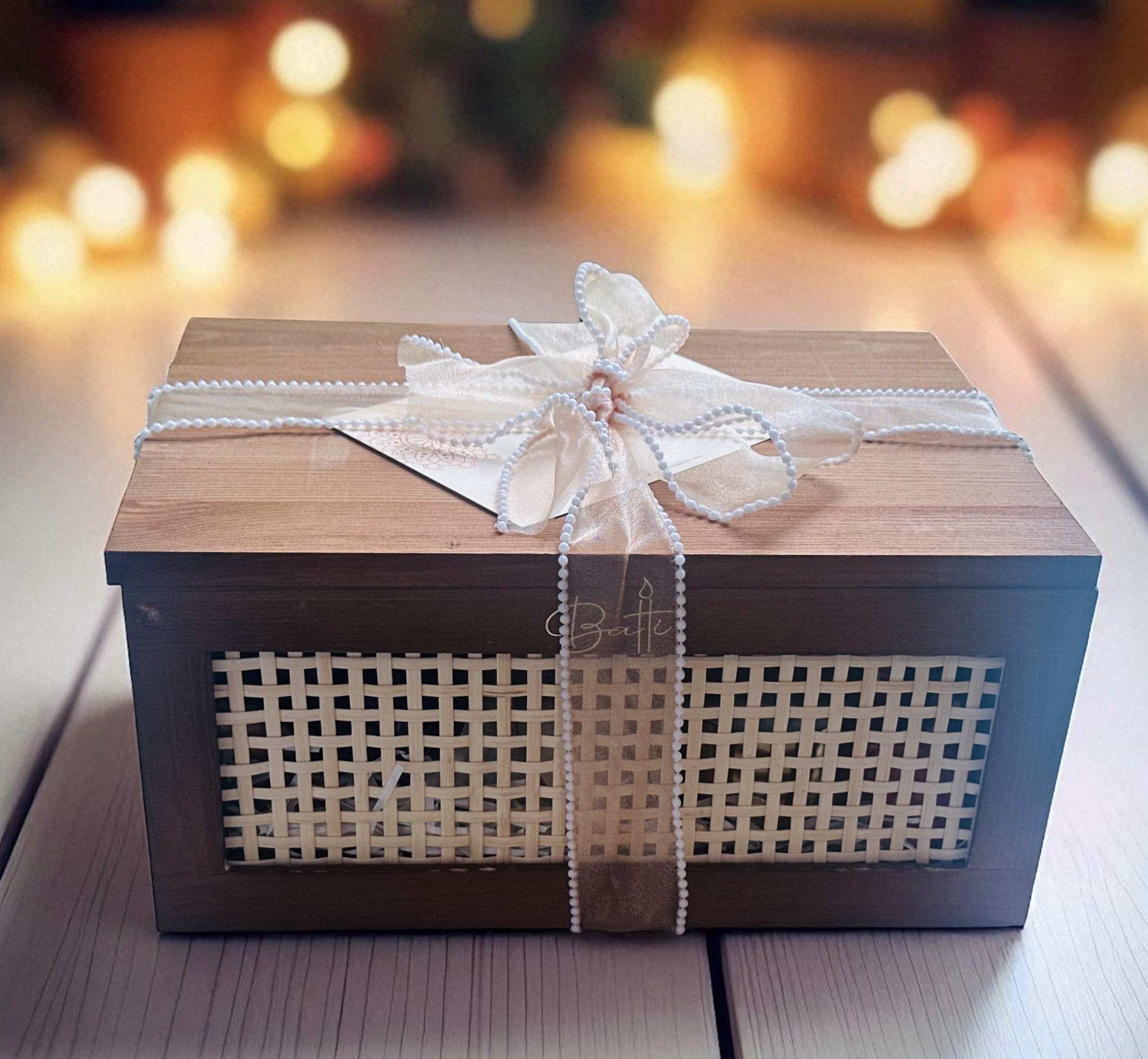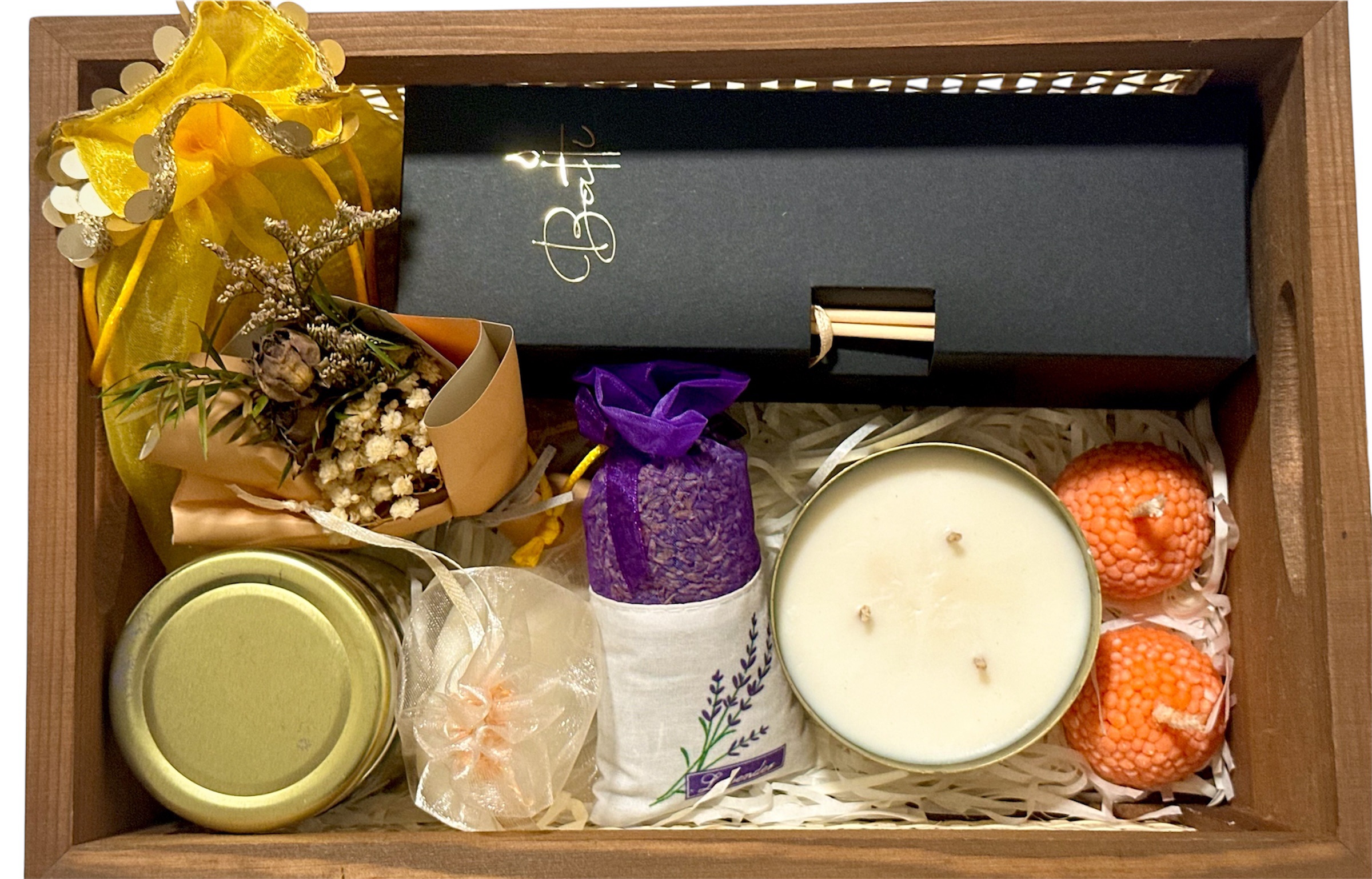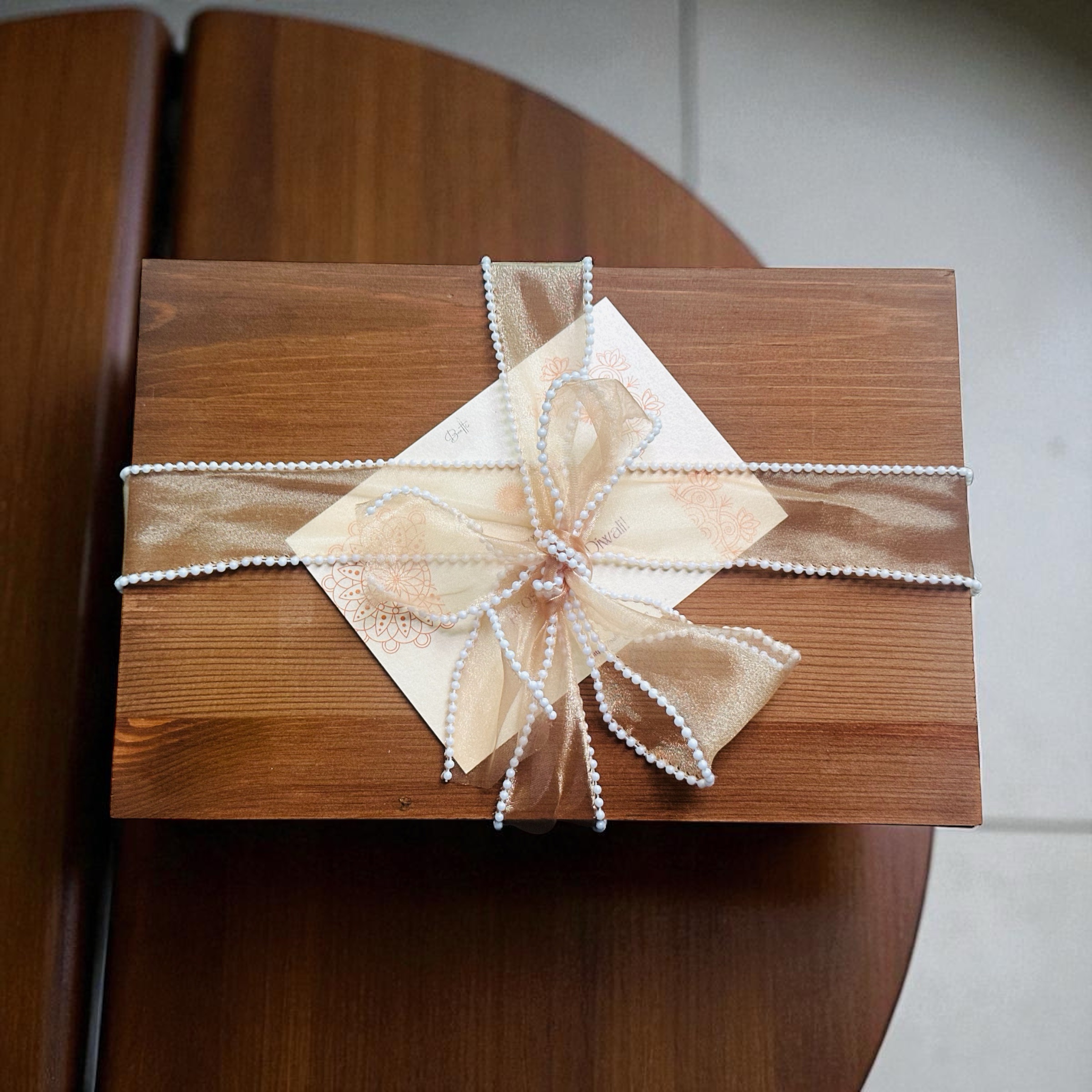 Discover the perfect blend of tradition and luxury with the Shubh Essence Hamper, thoughtfully curated by Batti Candles. Encased in a beautifully crafted wooden storage box with a lid (30 × 20 × 14cm), this exquisite hamper is ideal for festive gifting, celebrations, or elevating your own home.